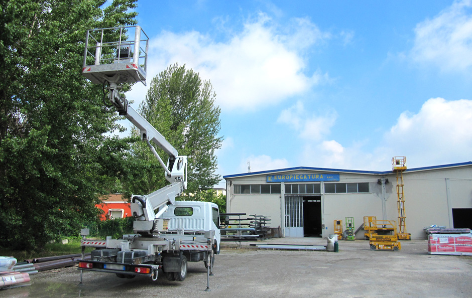 Siamo forniti di piattaforme aeree elettriche per il sollevamento di merci, autocarrate (cestello) e attrezzature aeree,
